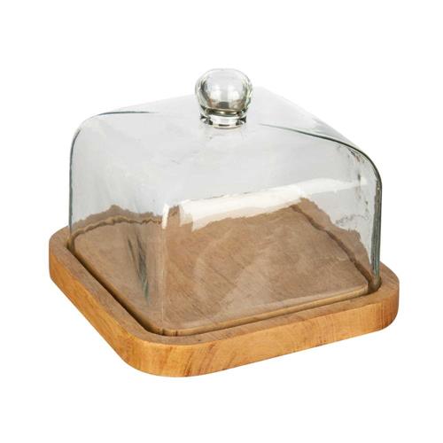 This Wood Server with Glass Dome displays foods beautifully in a natural yet elegant style. Set this server out for dinner parties, brunch or even every day use. With quality craftsmanship, this server is crafted from solid wood and glass for a beautiful design. Just wipe with a dry cloth to clean.